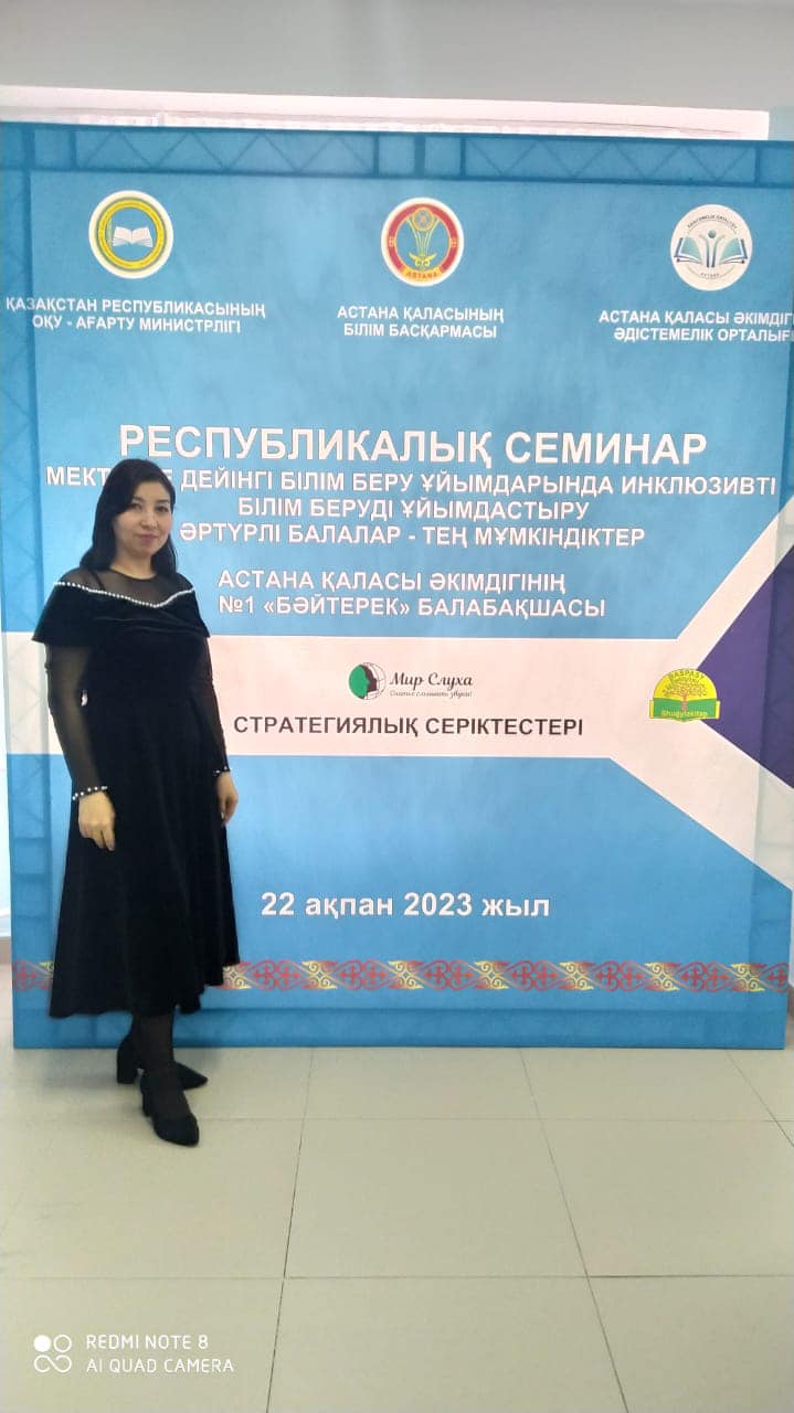 22 ақпанда ҚР ОАМ Балаларды ерте дамыту институты, Астана қаласының білім басқармасы, Әдістемелік орталығы, әр өнірлерден келген басшылар мен Ұлытау облысынан КМҚК «Балауса» бөбекжай әдіскері Жаменкенова Меруерт Есенбековна, №1 «Бәйтерек» бөбекжай-балабақшасы ұйымдастырған «Әртүрлі балалар – тең мүмкіндіктер» атты республикалық семинарына қатысты.