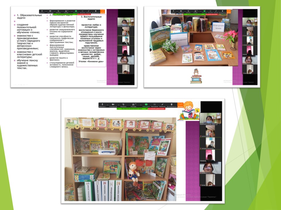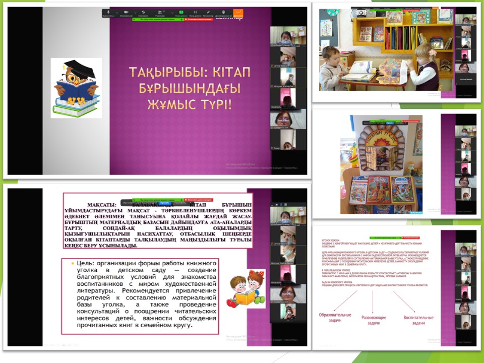Балабақша әдіскері Исанбаева Г.Ж. "Кітап бұрышындағы жұмыс түрлері" тақырыбында педагогтарға арналған әдіс-тәсілдер өткізді.