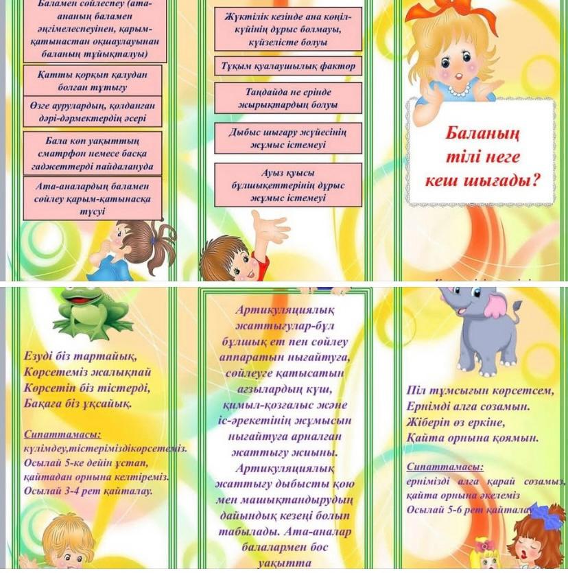 Құрметті ата - аналар мен бөбекжайымыздың әлеуметтік желі қонақтары! Сіздерге баланың тілі тез шығуына арналған “барлығына қолжетімді сапалы білім” ұлттық баяндамасын жүзеге асыру бойынша бөбекжайда ата - аналарға консультациялық пункт жұмыс жоспарына сәйкес қазақ тілі мұғалімі: Игибаева Кенже Толегеновна дайындаған жадынамасын назарларыңызға ұсынамыз.